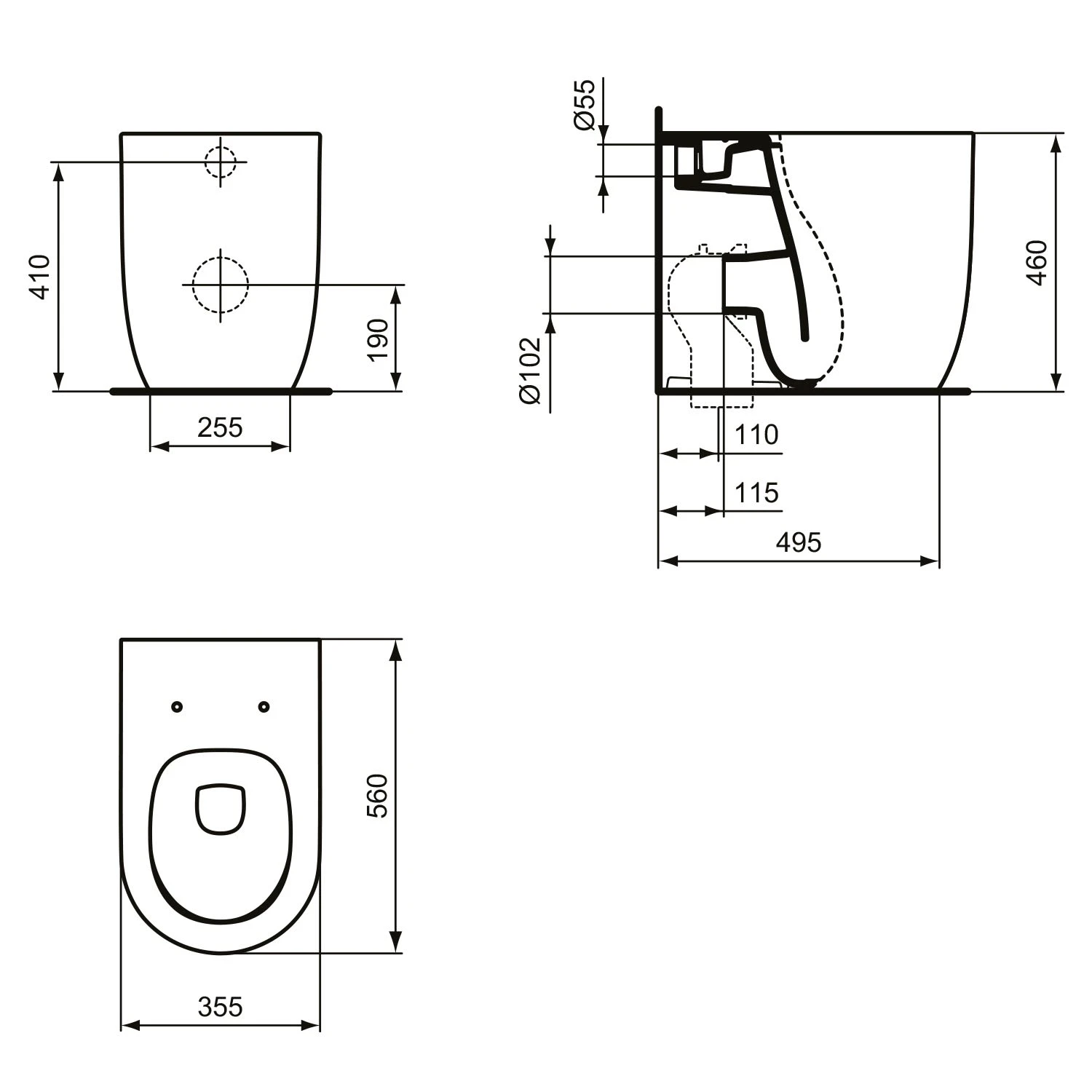 - Wasserausgang: horizontal hinten verdeckt