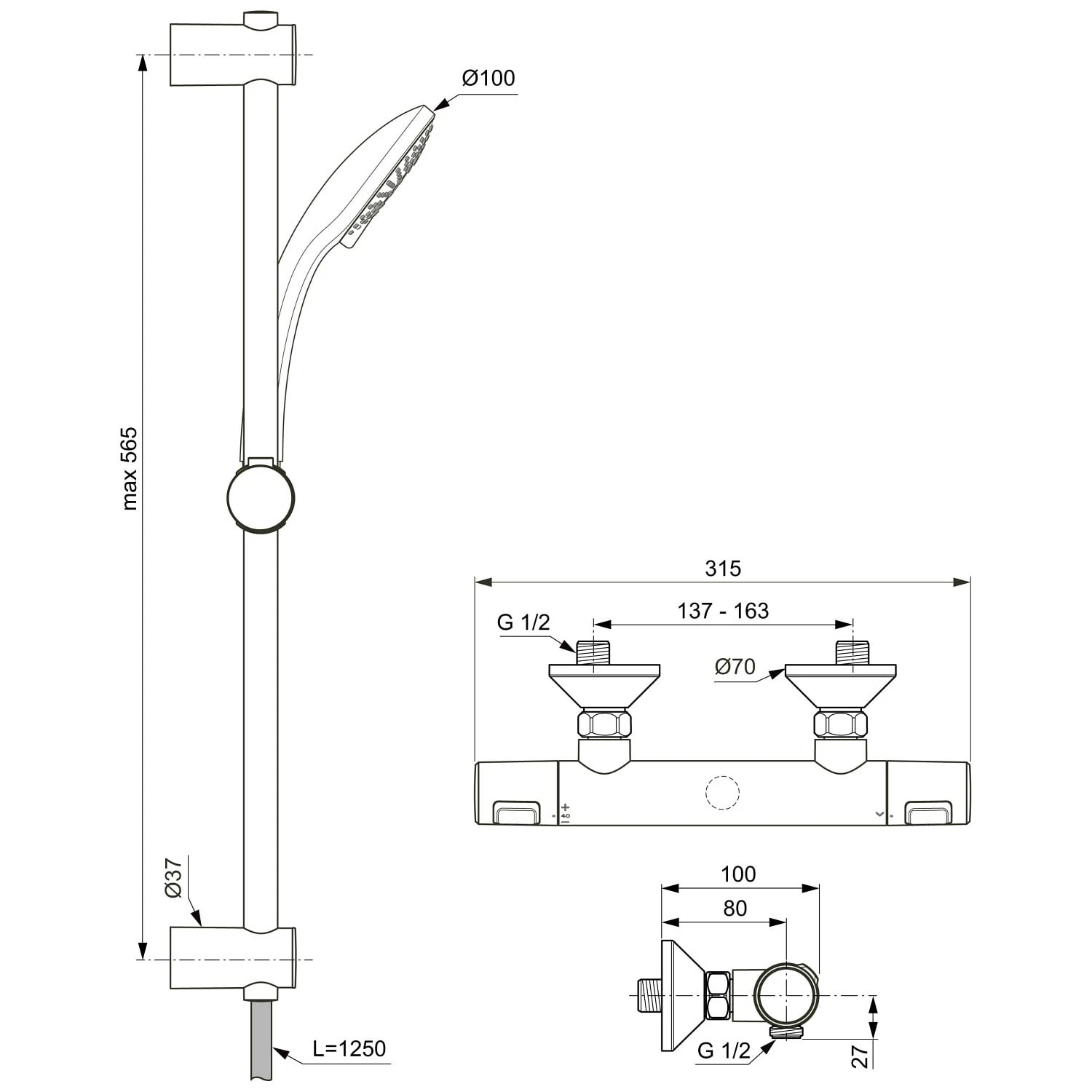 Ideal Standard CeraTherm T25 AP Brausekombination 60 cm mit Thermostat