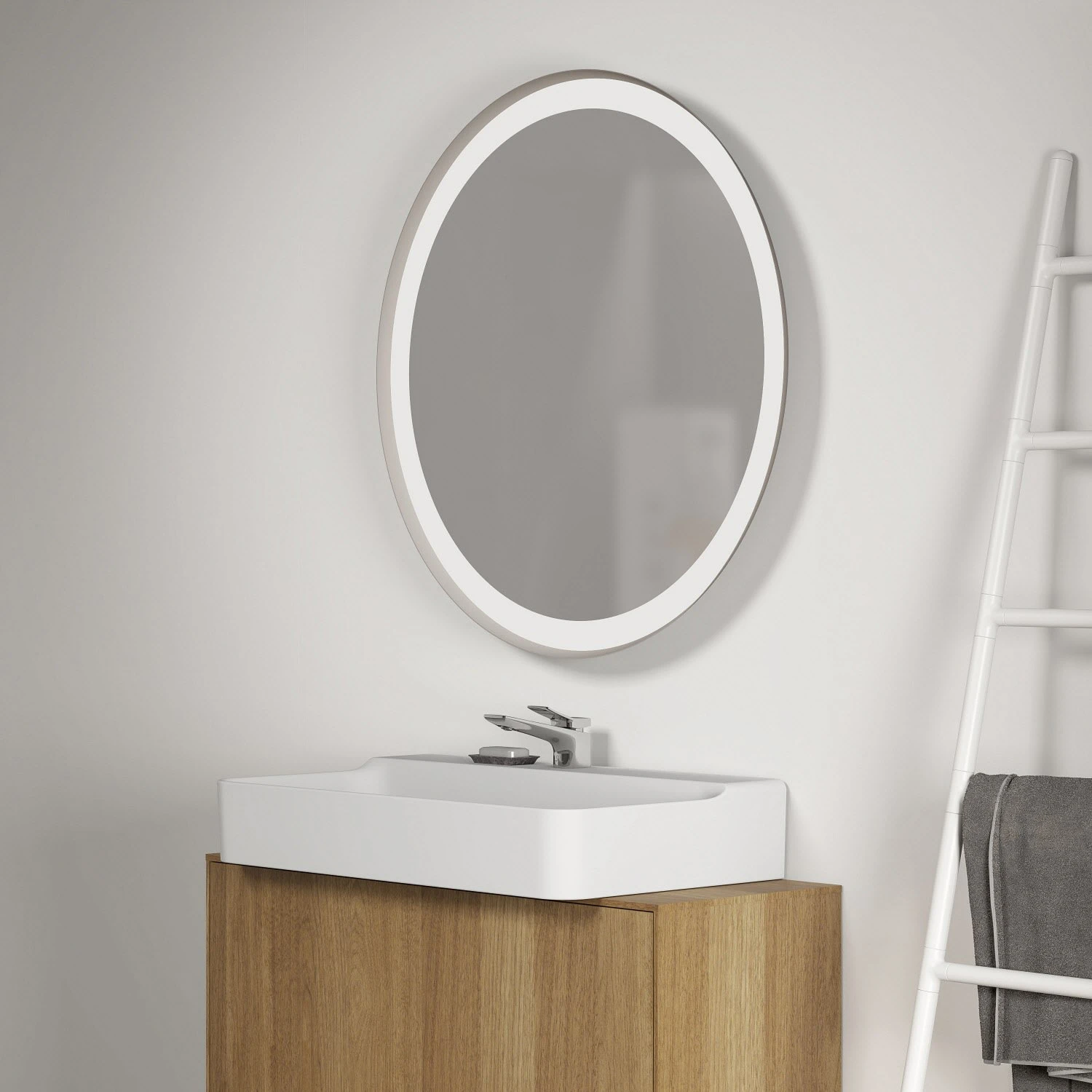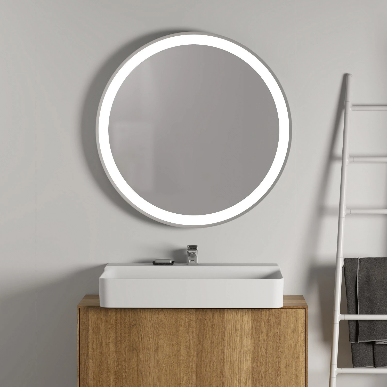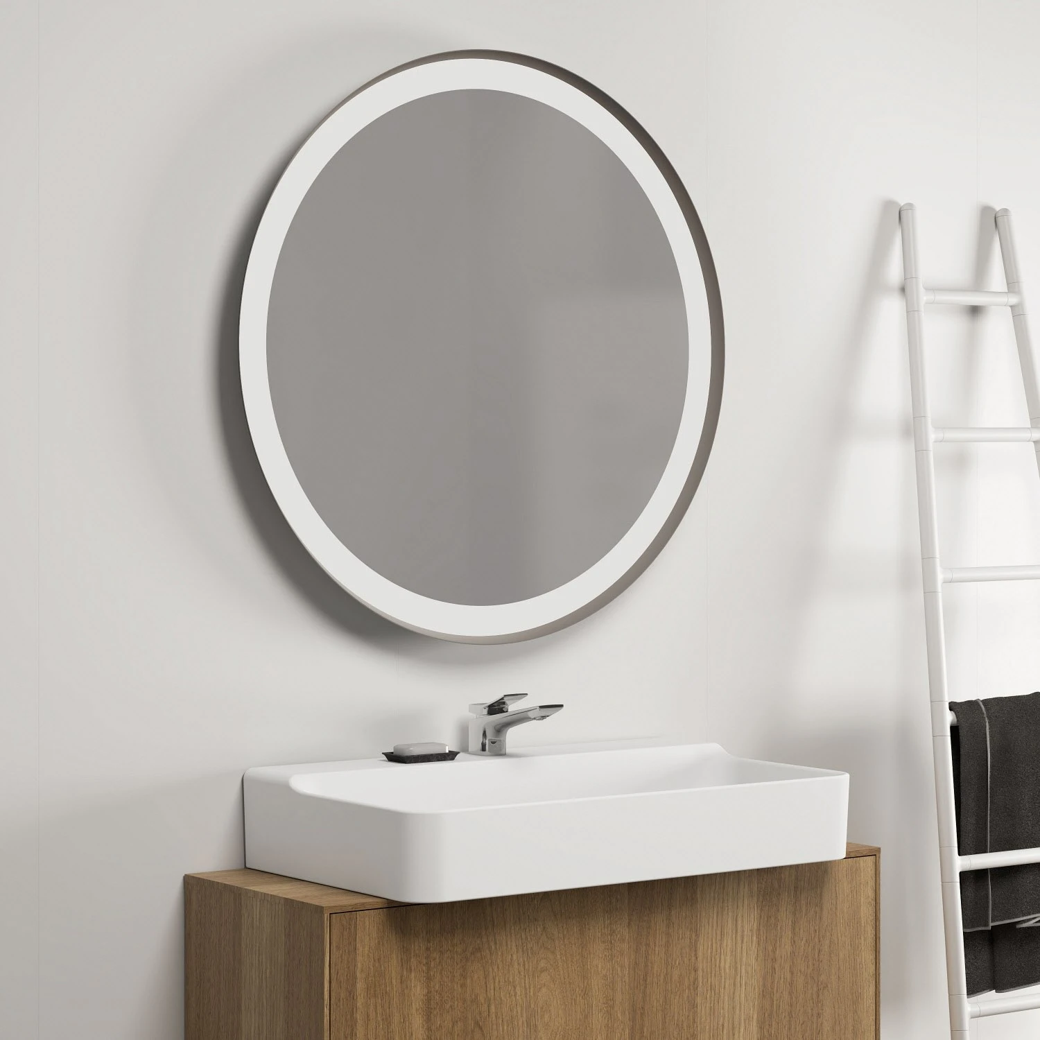 Ideal Standard Conca Spiegel rund 90 cm, mit Ambientelicht und Metallrahmen