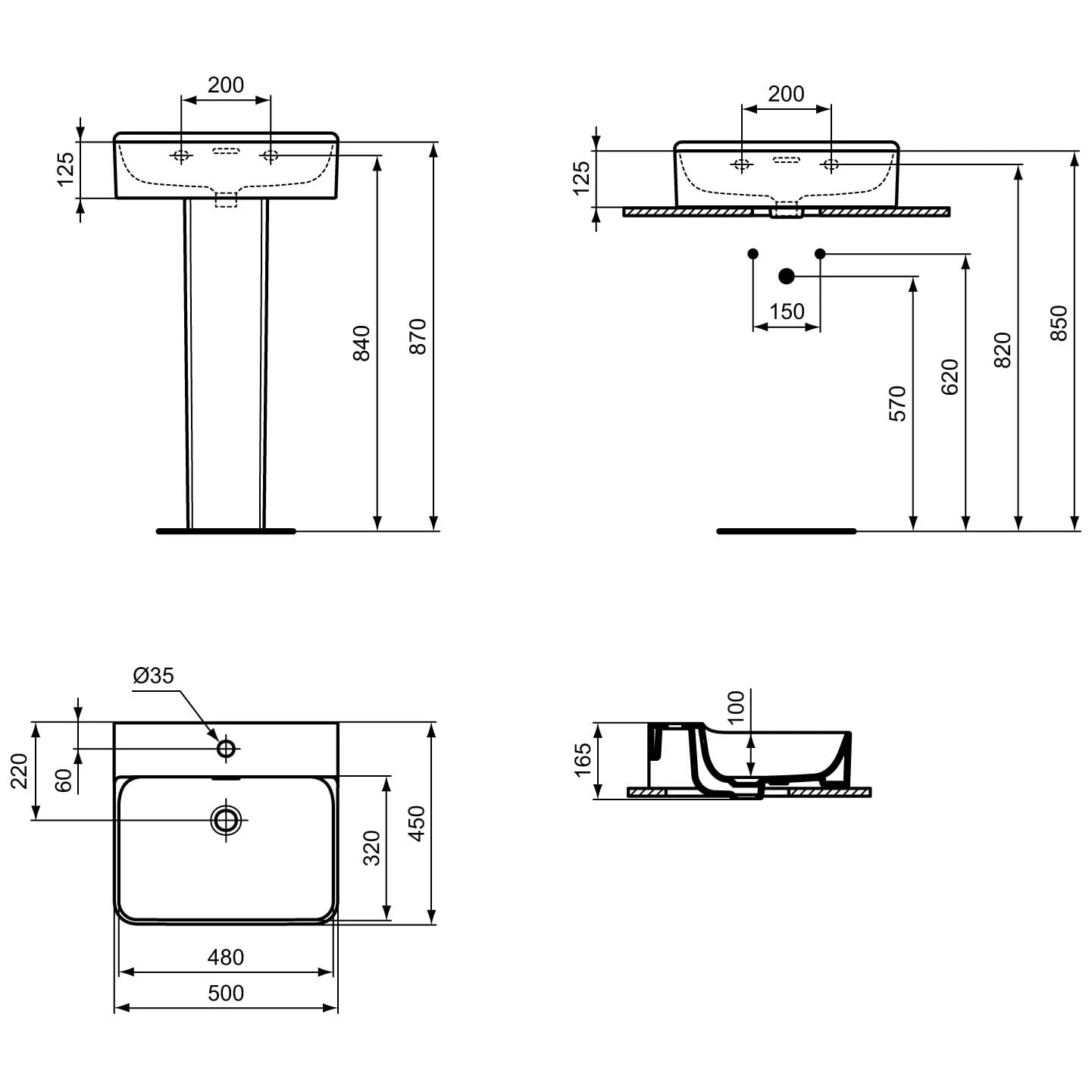 Ideal Standard Conca Waschtisch 50 cm, 1 Hahnloch, mit Überlauf