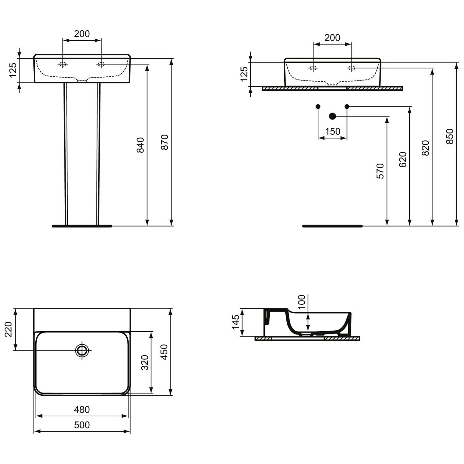 Ideal Standard Conca Waschtisch 50 cm, ohne Hahnloch, ohne Überlauf