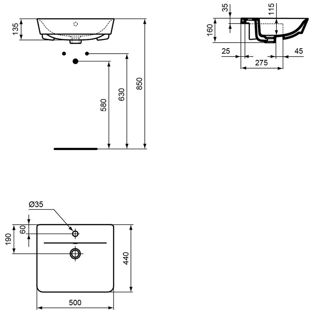 Ideal Standard Connect Air Cube Halbeinbauwaschtisch 50 X 44 cm