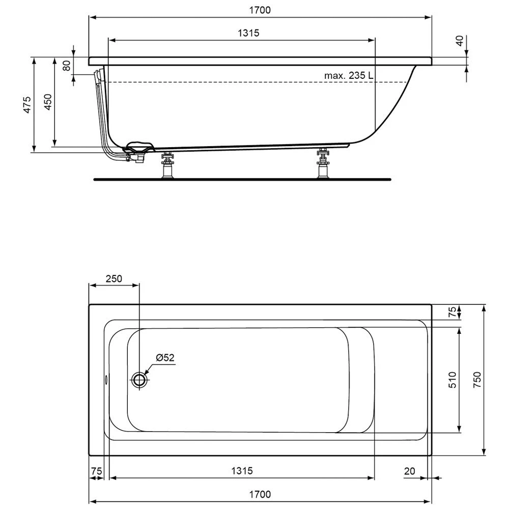Ideal Standard Connect Air Körperform-Badewanne 170 x 75 cm