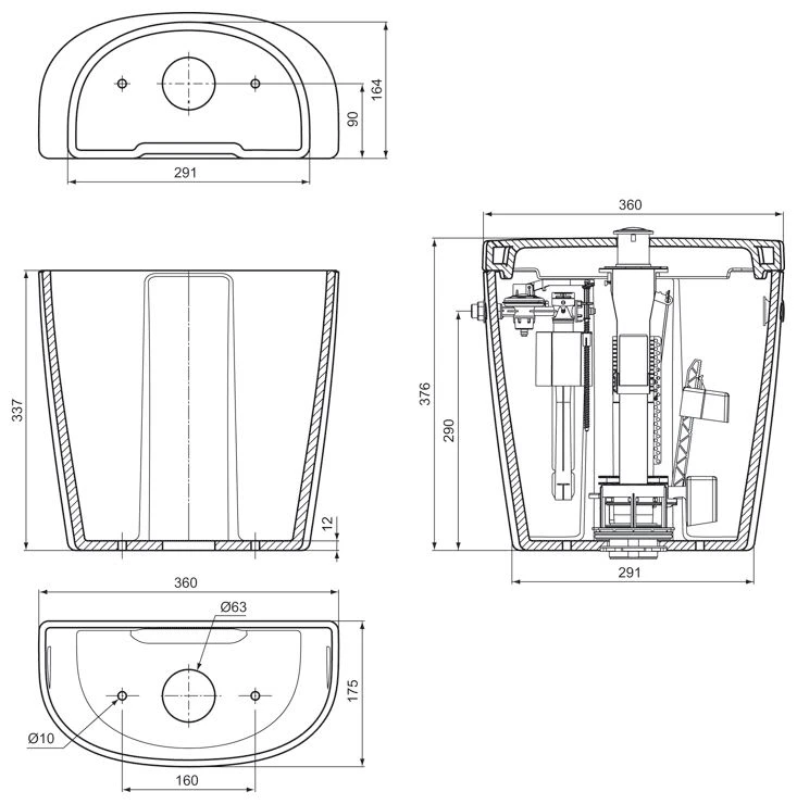 | Ausführung | Zulauf von unten, Zulauf seitlich |