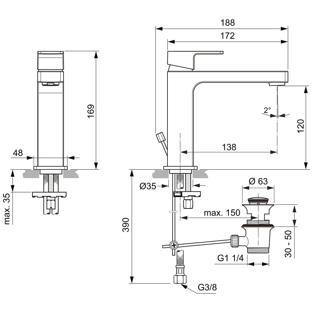 Ideal Standard Edge Waschtischarmatur Grande Slim mit Ablaufgarnitur