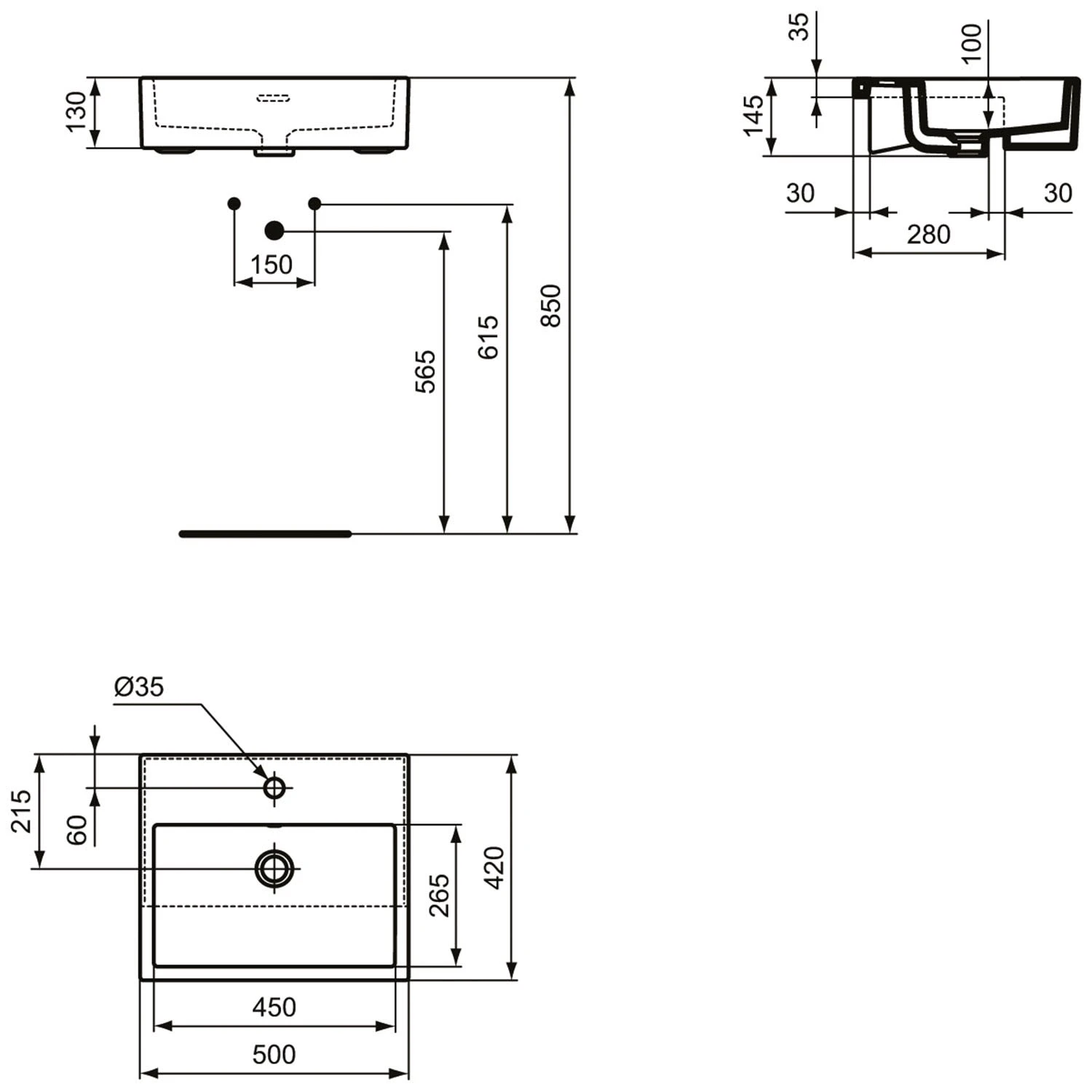 Ideal Standard Extra Halbeinbau-Waschtisch 50 cm, mit Hahnloch, mit Überlauf