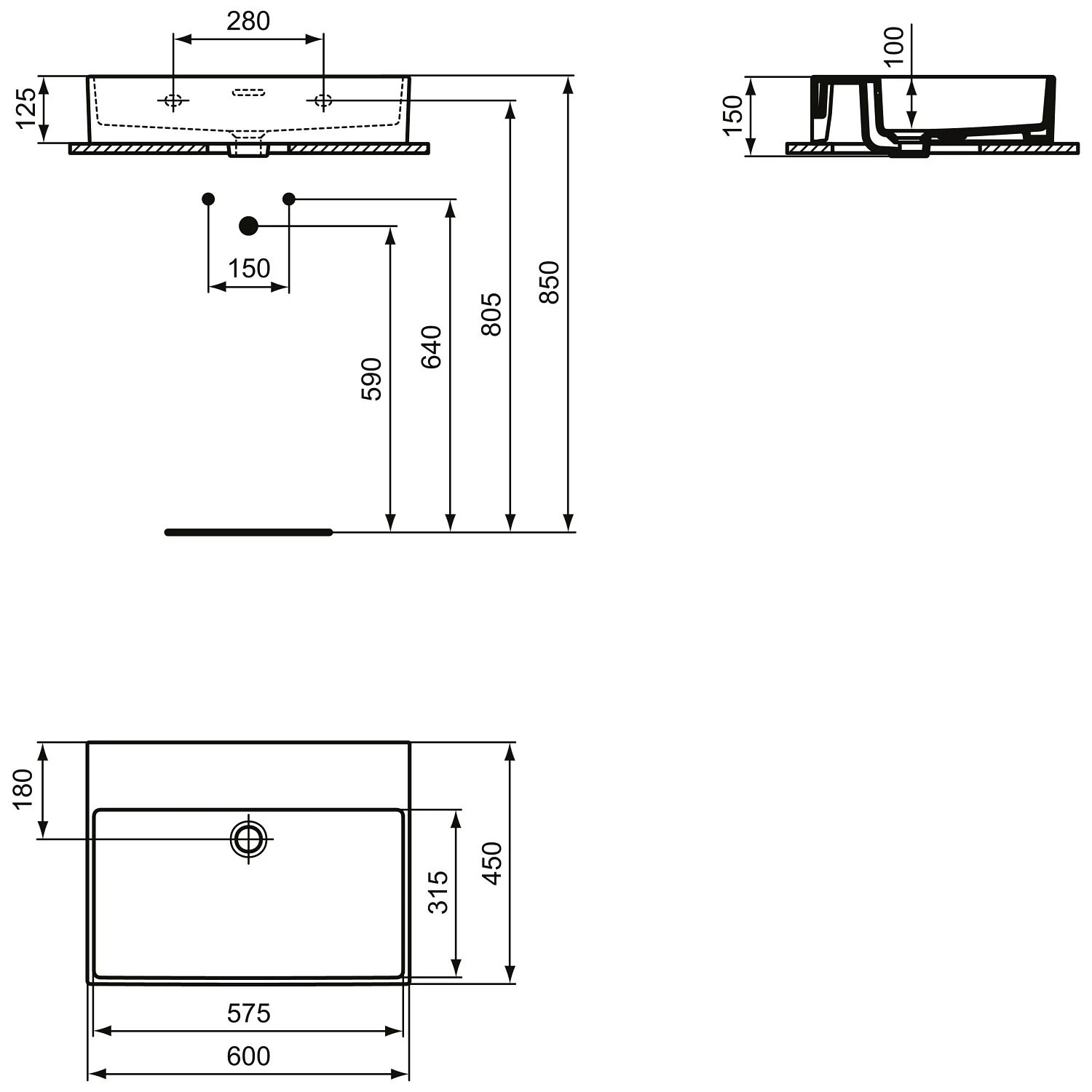 - mit Ablaufloch: Ø 4,5 cm