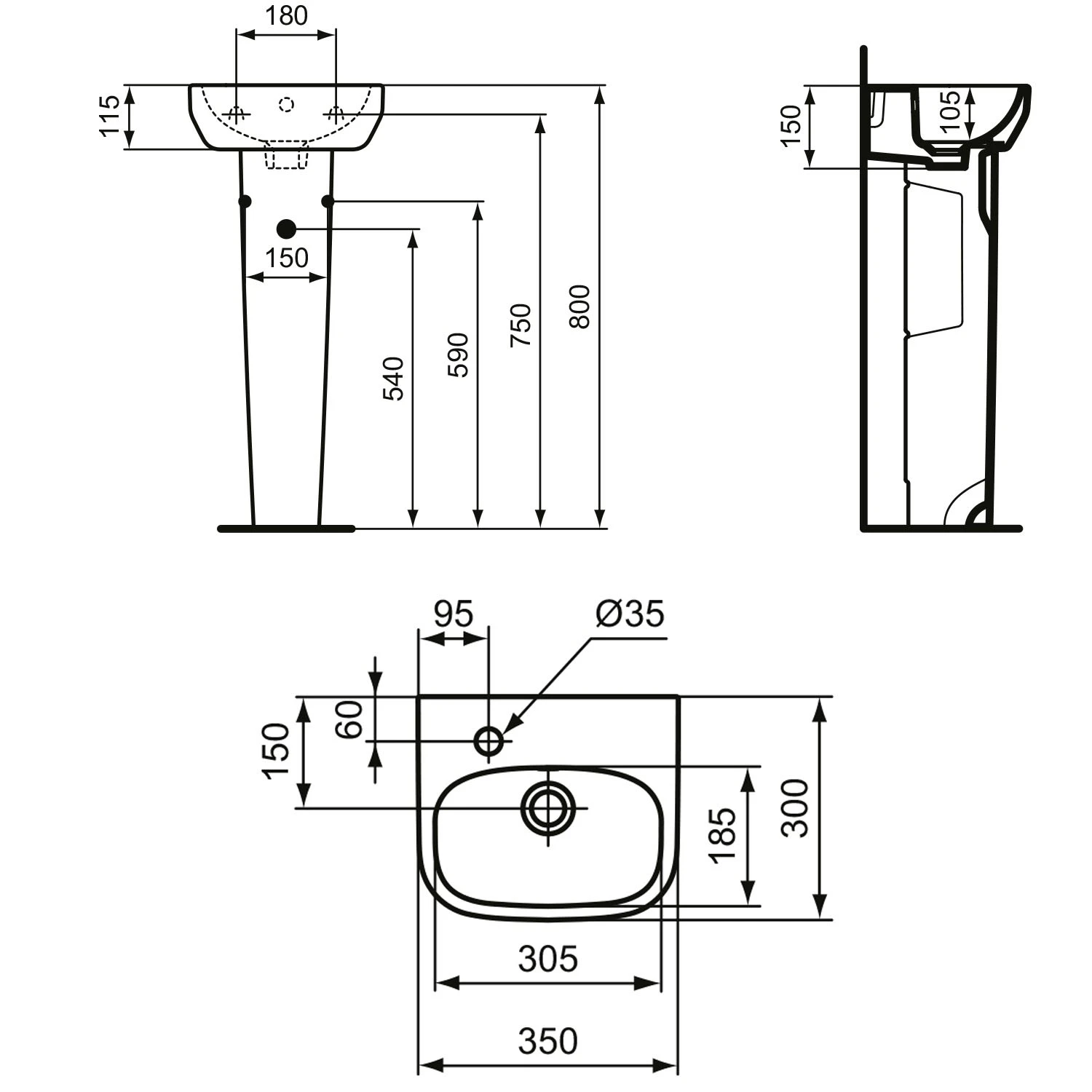 Ideal Standard i.life A Handwaschbecken 35 cm, 1 Hahnloch links, mit Überlauf