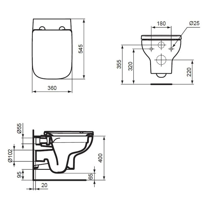 Ideal Standard i.life A WC-Paket eckige Form ohne Spülrand