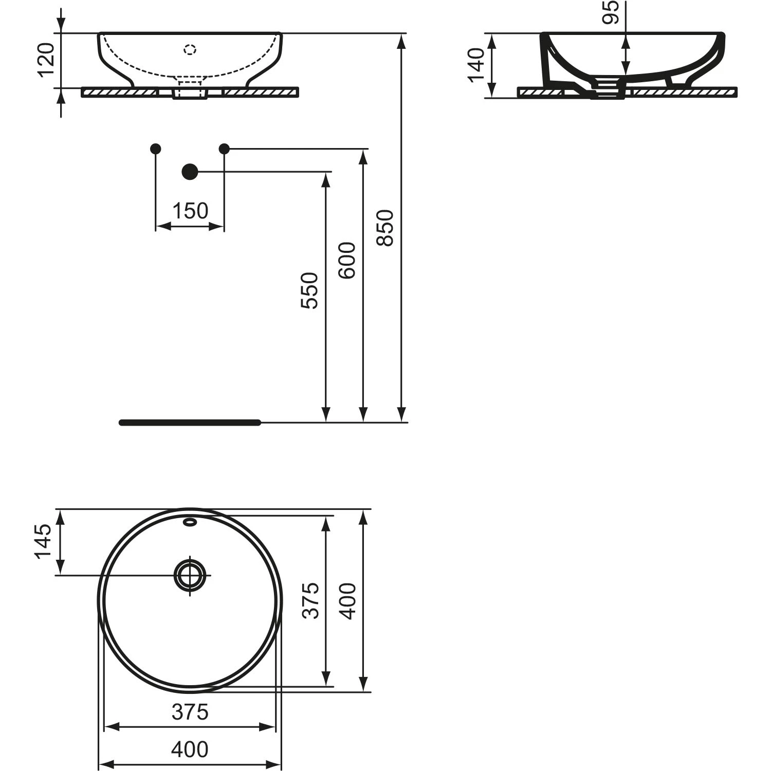 Ideal Standard i.life B Schale 40 cm, ohne Hahnloch, mit Überlauf
