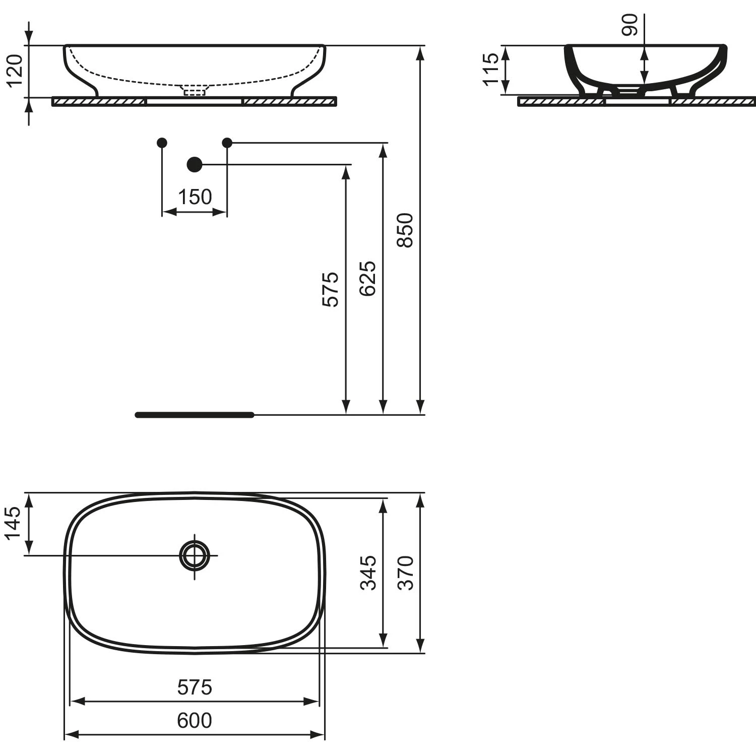 Ideal Standard i.life B Schale 60 cm, ohne Hahnloch, ohne Überlauf