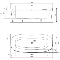 - vorbereitet für Standardablaufgarnituren (Bitte saparat aus dem Zubehör bestellen.)