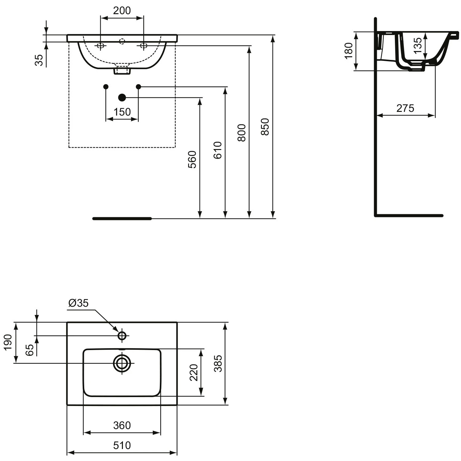 Ideal Standard I.life S Möbelwaschtisch 51 Cm, 1 Hahnloch, Mit Überlauf