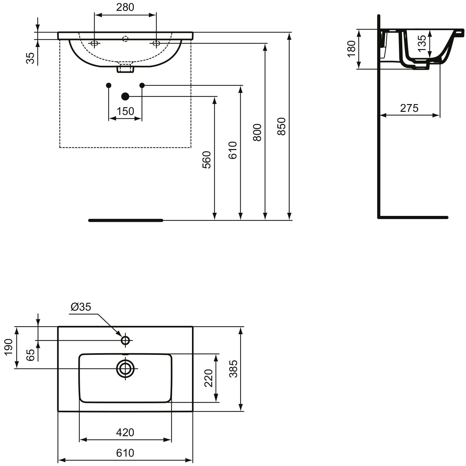 Ideal Standard i.life S Möbelwaschtisch 61 cm, 1 Hahnloch, mit Überlauf