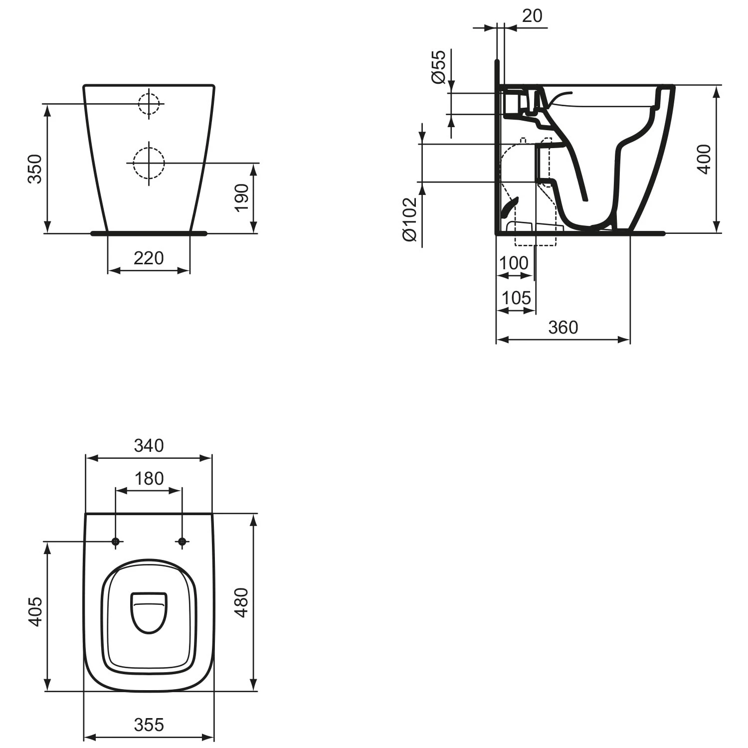 Ideal Standard i.life S Standtiefspül-WC eckig ohne Spülrand