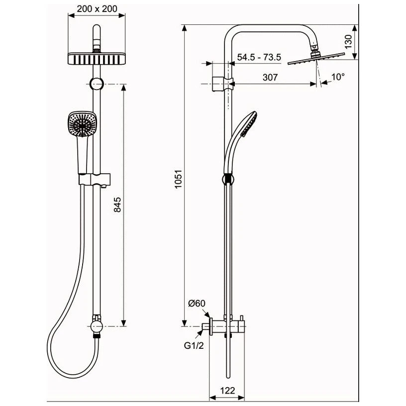 - Ausladung Mitte Brausestange bis Mitte Kopfbrause 30,7 cm