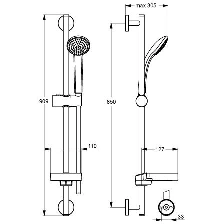 - Brausestange Befestigungsabstand 85 cm