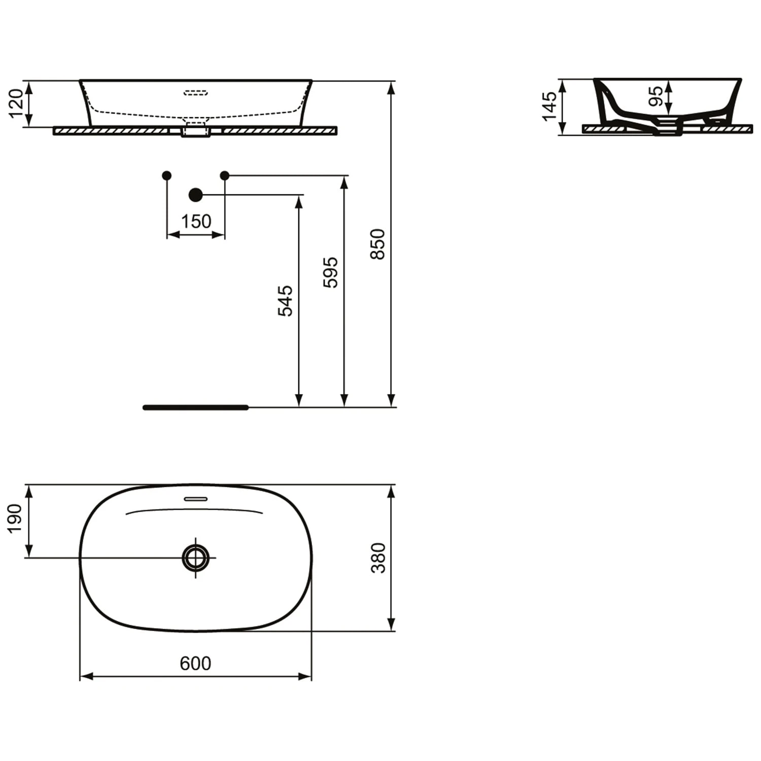 Ideal Standard Ipalyss Aufsatzschale oval mit Überlauf, ohne Hahnloch 60 x 38 cm