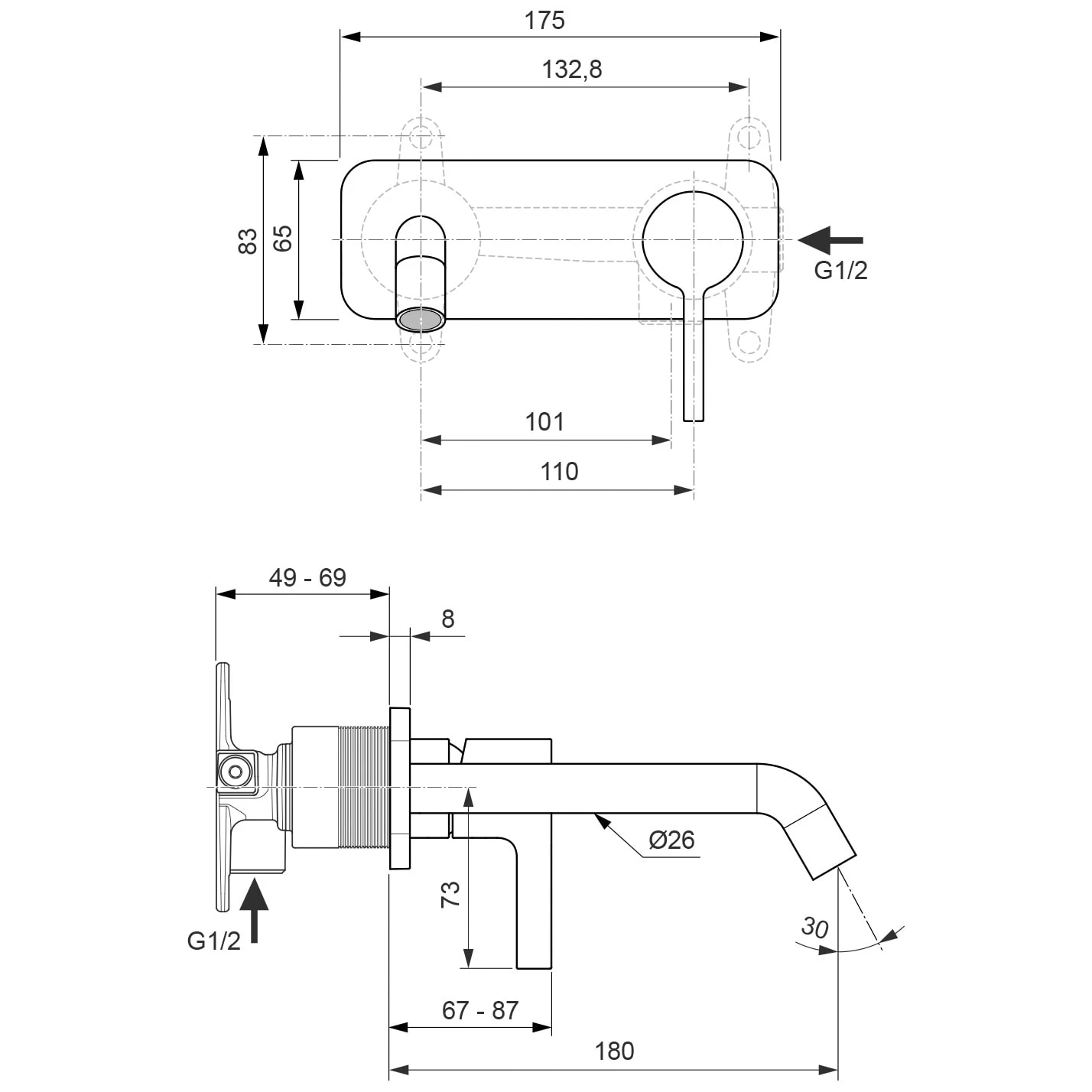 - Einhebel-Armatur für Wandeinbau Unterputz