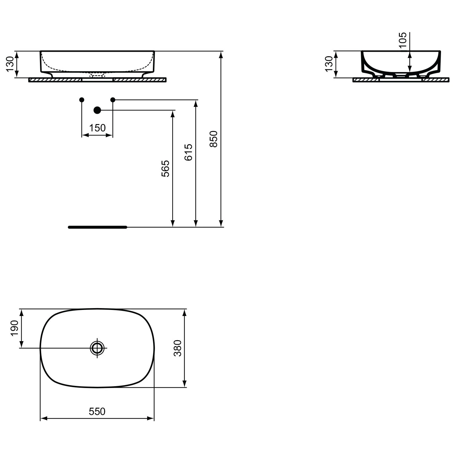 Ideal Standard Linda-X Aufsatzwaschtisch 55 cm, ohne Hahnloch, ohne Überlauf