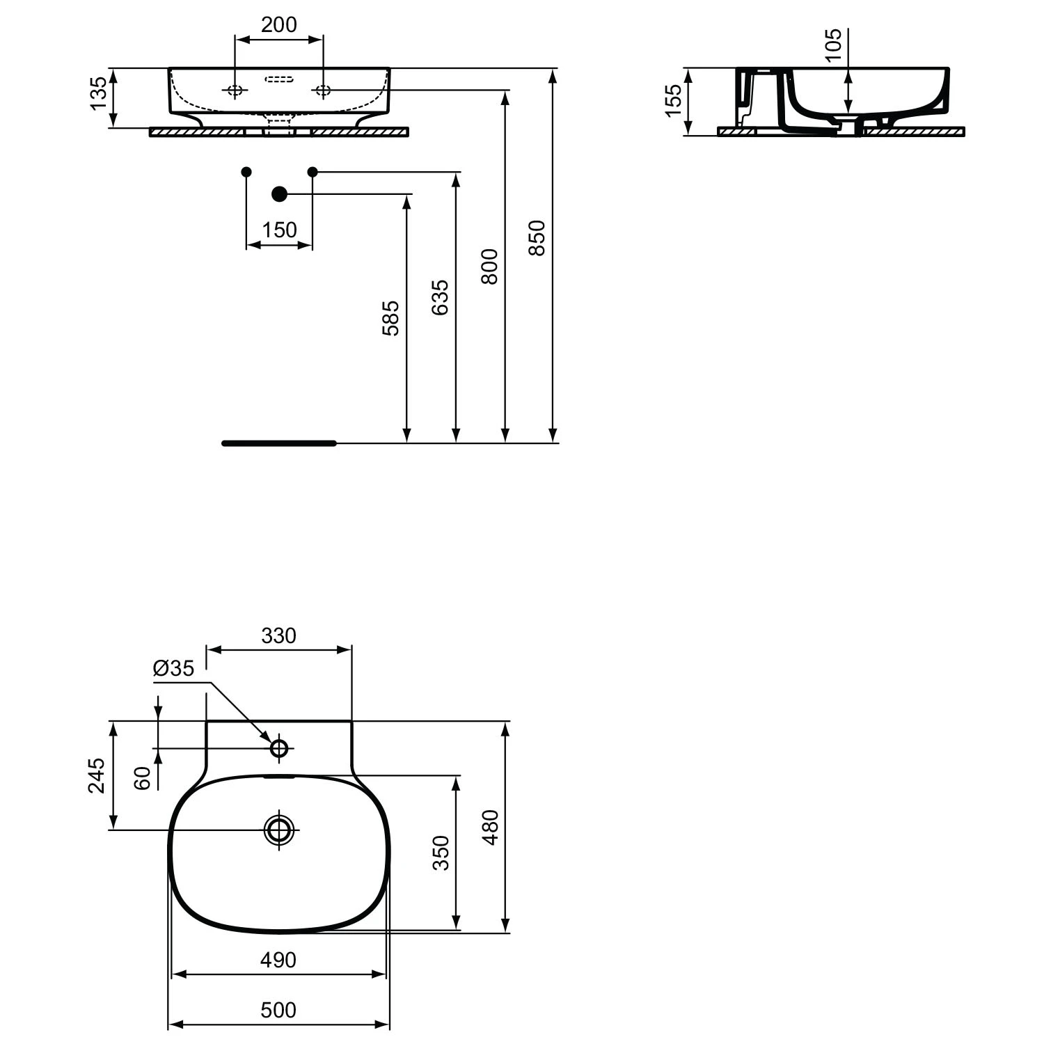 Ideal Standard Linda-X Waschtisch 50 cm, 1 Hahnloch, mit Überlauf