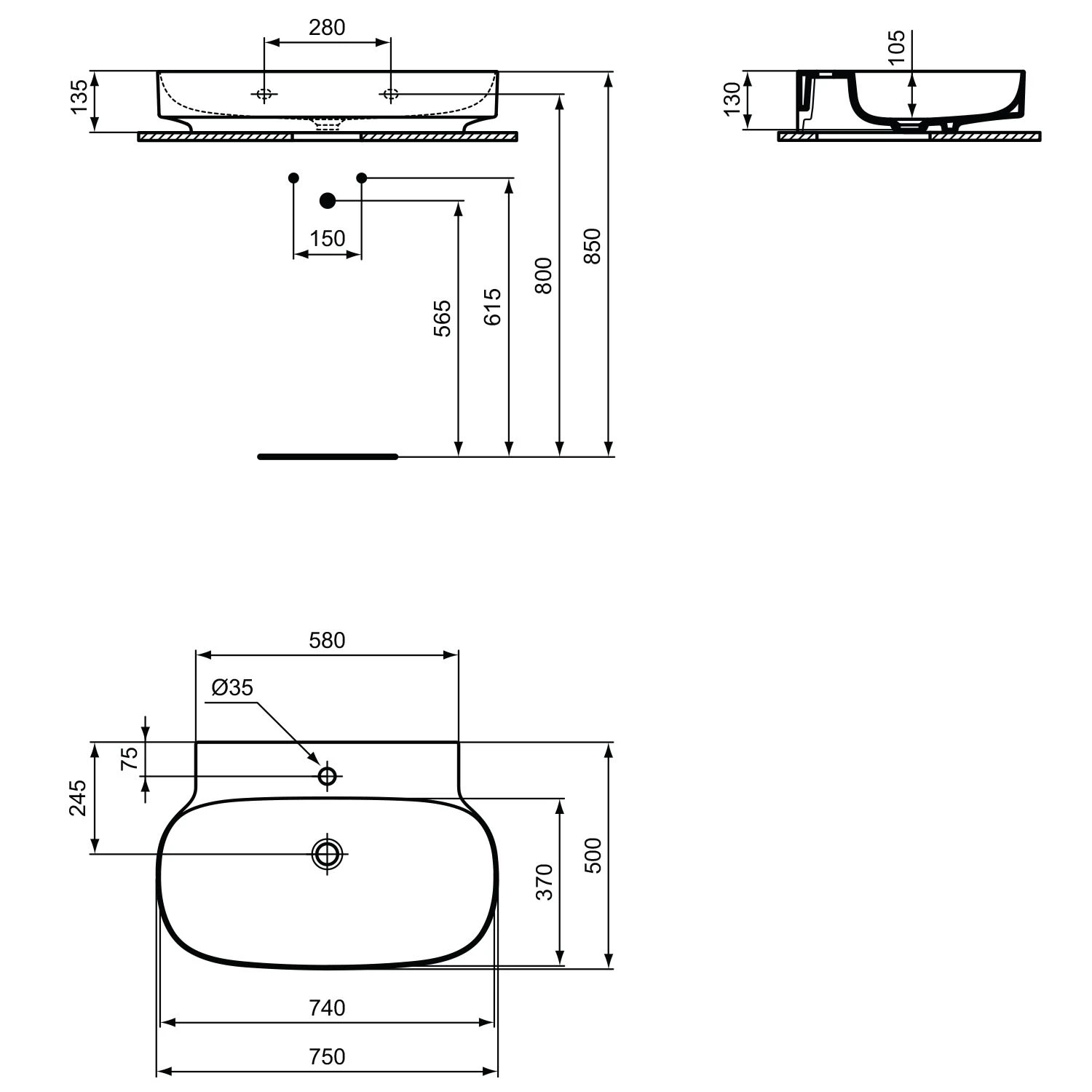 Ideal Standard Linda-X Waschtisch 75 cm, 1 Hahnloch, ohne Überlauf, geschliffen