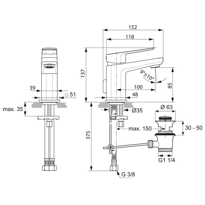 Ideal Standard Tonic II Waschtischarmatur Piccolo, mit Ablaufgarnitur