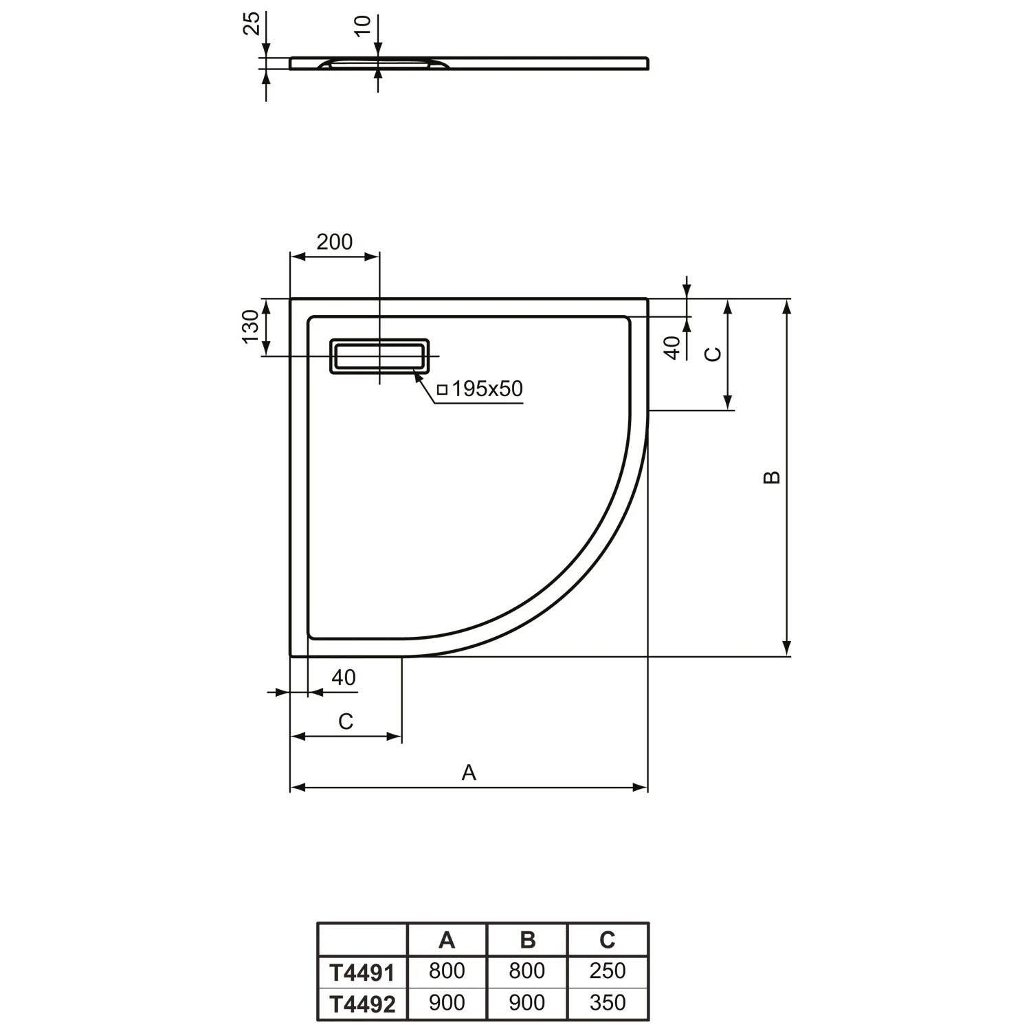 Ideal Standard Ultra Flat New Viertelkreis-Brausewanne 90 x 90 cm
