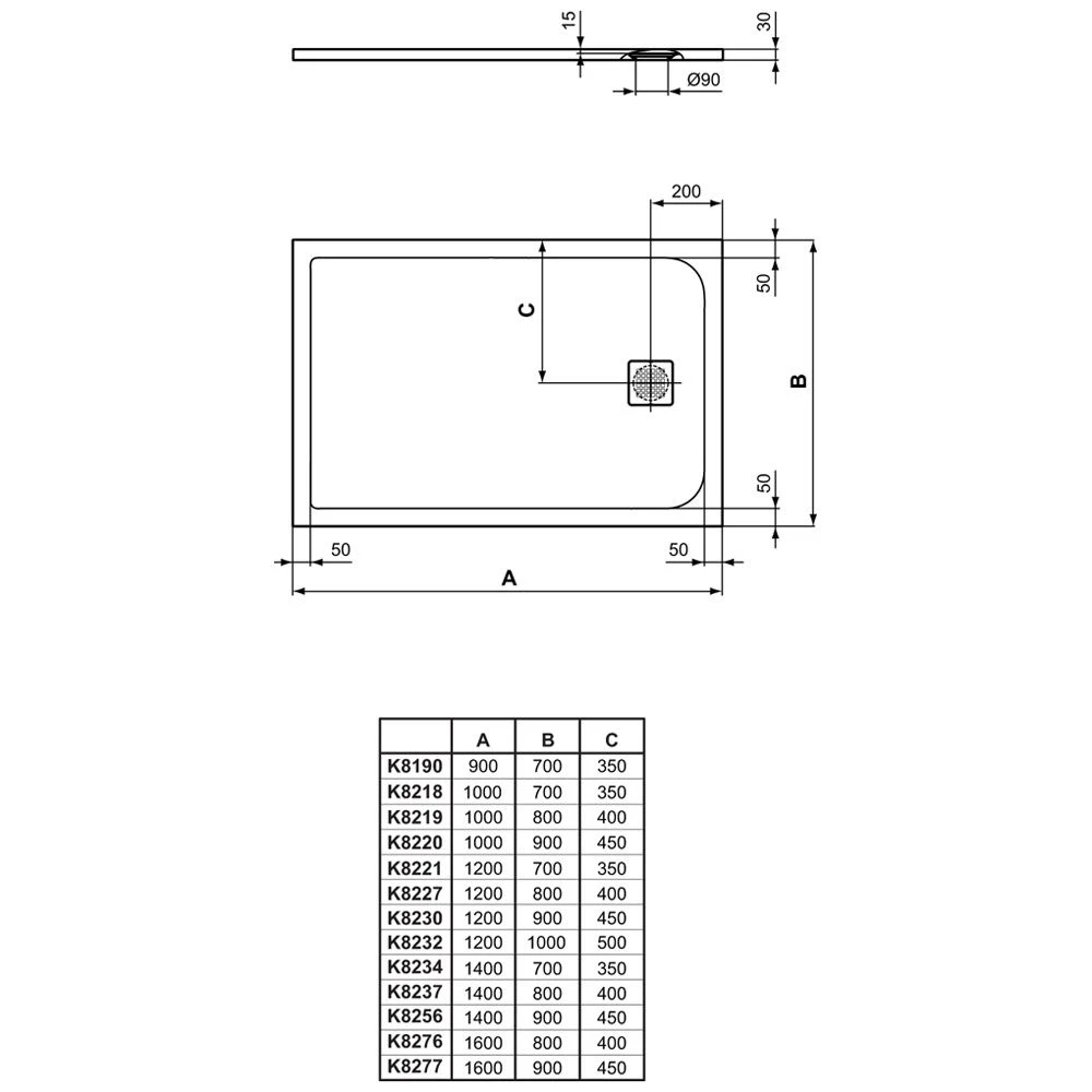 - Rechteck-Brausewanne aus Ideal Solid, gefertigt nach DIN EN 14527